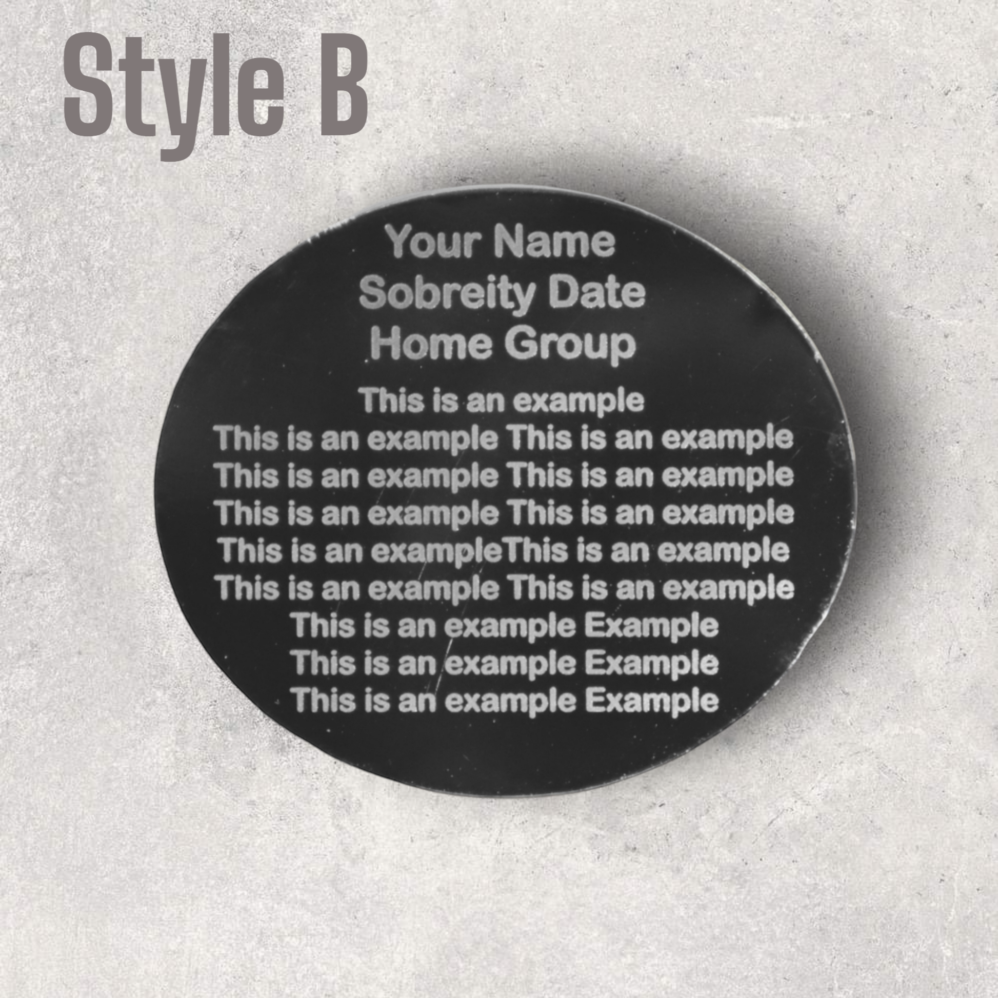 Please note, each design has a unique character count based on the space available for engraving. If you would like a longer quote on your medallion please consider one of the design options with a larger character count.